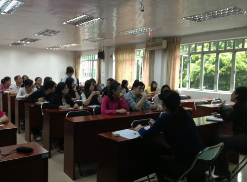 本次会议分两个环节进行,首先,巫盈通报了开学以来各班的出勤情况,希望同学们能严格遵守纪律,正确处理好学习、工作与生活的关系,珍惜有限的学习时间,尽量按时到校上课。随后,她还就课堂教学评估及期末考试等相关事项作了说明。接着,会议进入座谈会的环节,主要是听取同学们对开学以来我们老师的教学方法、教材的适应性以及其他教学管理等方面的意见和建议,以便我们及时发现问题,及时解决问题,进一步提高教学质量和提升教学管理水平。座谈会上各班代表都能踊跃发言,大家对我们本学期各方面的安排均表示比较满意,对教师的教学水平、教学态度、教学方法及学生管理等方面都比较认可。另外,针对同学们反映的一些问题,其中包括13级商务英语专业网络课程中综合测试题分值设定的不合理性、个别教师课堂教学缺乏互动、个别教材过于简单等,与会老师认真听取了同学们的意见,并表示会及时跟进和解决这些问题。