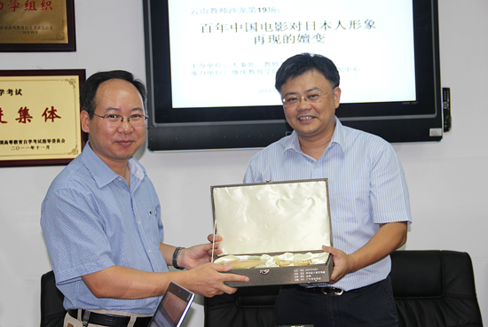 本网讯 2013年8月10日下午,由大学人事处和教师发展中心主办、我院承办的“百年中国电影对日本人形象再现的嬗变”专题学术沙龙会议在第三教学楼207会议室召开。本次会议特邀华侨大学社科处处长杨楹教授担任主持,并邀请《学术研究》杂志社主编叶金宝教授、华南理工大学武建国教授、暨南大学梁瑞卿教授担任点评专家。我院院长何勇斌、副院长陈开举及大学相关学术专家出席了本次活动。
