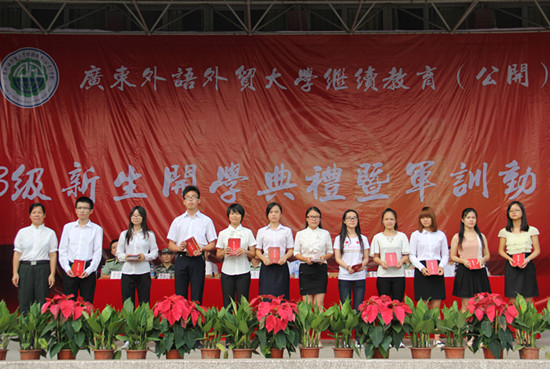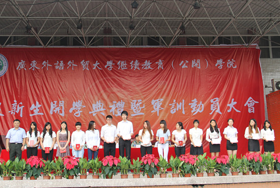本网讯 9月9日上午,在公开学院的开学典礼上,学院对在2013年7月广东省自学考试统考考试中获得“统考高分奖”的150名优秀学子进行了表彰与奖励。仪式上由继续教育(公开)学院副院长任跃忠宣读表彰决定,学院院长何勇斌、党委书记苏冬燕分别为获奖同学颁奖。