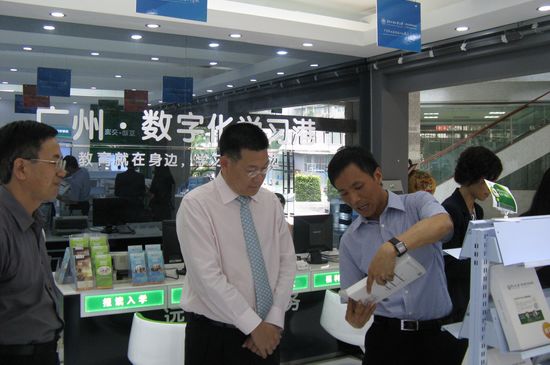 本网讯 为了让更多的有志之士分享我校的教育、科研发展成果,同时为适应未来教育的发展模式,我校与广州远程教育中心合作,建立了广东外语外贸大学职业英语培训网和广东外语外贸大学职业能力培训网。目前,该网站的建设工作已基本完成。10月8日下午,我校校长仲伟合在副校长何传添,继续教育(公开)学院院长何勇斌、党委书记苏冬燕、副院长陈开举的陪同下,到广州远程教育中心考察了网站建设情况,并在广州远程教育中心总经理谢巍的陪同下参观了广州数字化学习港。