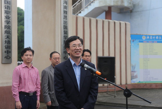何传添在致辞中高度赞扬了海南外国语职业学院为争取尽快成立函授站所做出的不懈努力,并对海南省教育厅对函授站的成立所给予的支持表示感谢。他指出,海南函授站是我校第一个在广东省外建立的成教函授站,是落实我校与海南外国语职业学院在今年4月签订对口合作框架协议的重要举措。它的成立既是对我校成人高等教育对外合作办学工作的推进,也标志着我校继续教育迈上了新的台阶。我校将不断发挥自身优势,进一步加快与海南外国语职业学院合作的步伐,通过各种形式,多角度、全方位地强化校际交流,促进合作办学,全面落实双方框架协议上的每项合作内容。