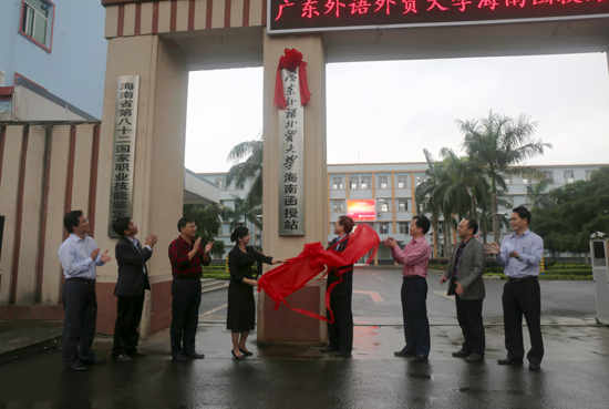 本网讯 11月22日上午,广东外语外贸大学海南函授站揭牌仪式在海南外国语职业学院隆重举行。我校何传添副校长、继续教育(公开)学院何勇斌院长、陈开举副院长等人专程前往海南省文昌市出席仪式。海南省教育厅和文昌市教育局有关领导、海南外国语职业学院李渝凤院长、杨学前副院长及学院各部门主要负责人参加了揭牌活动。仪式由海南外国语职业学院周运诗副院长主持。