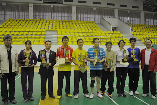 本网讯 2013年12月7、8日,由大学工会主办的“2013年广东外语外贸大学教职工羽毛球赛”在北校羽毛球馆举行。本次比赛分为女子单打、男子单打、男子双打、女子双打、男女混合双打五个项目。我院选派10多名教工代表参加了比赛,并获得了团体总分第二名及优秀组织奖。