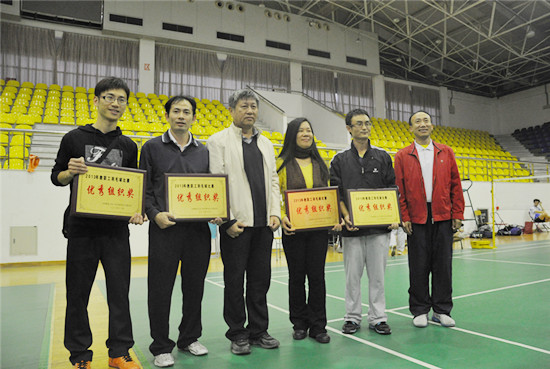 本次比赛采用分组淘汰制。虽然老师们平时没有经过专门的训练,但也都能信手拈来,所以比赛异常激烈。比赛中不时传出热烈的喝彩声,兴奋的“好球”声不断。老师们在比赛过程中,挥汗如雨,积极拼搏,不到最后一刻决不放弃的精神深深地打动了在场的每一个人。经历两天的角逐,最终我院的李清伟/张伟获得混合双打第二名,任跃忠/陈秋林获得男子双打第三名,魏少娟/曹灵辉获得女子双打第四名,陈妙音获得女子单打第五名,张镜荣/黄进炎(东语)获得男子双打第五名,陈家优获得男子单打第六名。