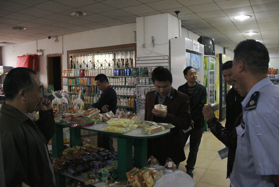当天,检查组所有成员先在晨学楼105会议室集中,由孙亚玲对检查组成员进行检查说明并提出检查要求,然后分别由孙亚玲和曽健文带队分为两个检查小组,先后对两个饭堂、超市和出租商铺进行了检查。每到一处,检查组的人员都详细检查了该点的餐饮服务许可证持有情况、食品原料采购索证索票情况、加工场所及过程卫生情况、从业人员个人卫生情况、食品添加剂使用情况以及是否遵守学院和慧友公司有关协议及会议要求等。