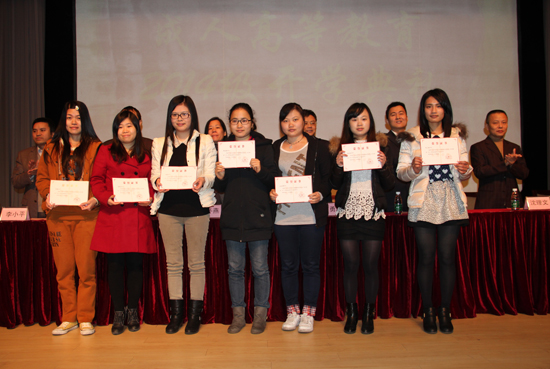 随后,大会对2013年度成教优秀学生进行表彰,苏冬燕宣读了《关于表彰成人高等教育年度优秀学生的决定决定》。经过评选,2012级和2013级成教生中,共有278名学生被评为“2013年度优秀学生”。何勇斌、苏冬燕、曾健文等人为获得表彰的优秀学生颁发了获奖证书。