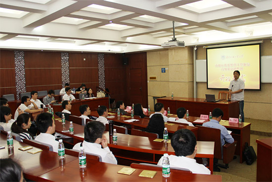 紧接着,南航运指中心党委书记黄国明发表讲话,他称赞广外是国内一所著名的外语院校,在培养外语人才和教学方面都有着丰富的经验,培训师资力量雄厚。同时,黄国明对我院承办的前两期培训班给予高度评价,他指出许多学员经过强化培训后回到工作岗位,能充分把外语能力运用到工作中去,流利的口语在大型的国际会议中发挥了重要作用,他认为前两期的培训项目从组织、管理和培训效果都达到双方预期目标,对广外老师们的辛苦劳动表示感谢。并对本期参加培训班的学员提出了具体的要求,他希望所有学员能尽快从一名精英骨干到普通学员的转变,由个人家庭生活向集体生活的转变,尽快适应新的学习生活环境,期待着学员在结业典礼中的精彩汇报演出。