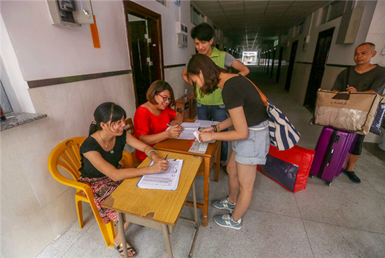 生活指导员为新生发放宿舍钥匙