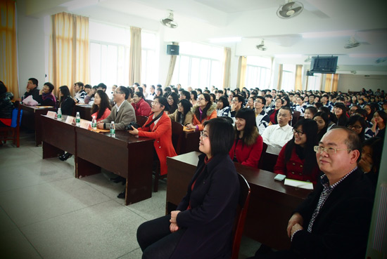 本次宣讲活动的讲师包括毕业于我校国际商务英语专业的吴保萱老师和毕业于英国华威大学的王莉莎老师。内容主要是解析高中学生在英语学习中遇到的困难,分享高考英语考试的策略与技巧,讲课内容生动、实用,每场1000多名师生全神贯注地与讲师团进行良好的互动,时而传出学生们欢乐的笑声。