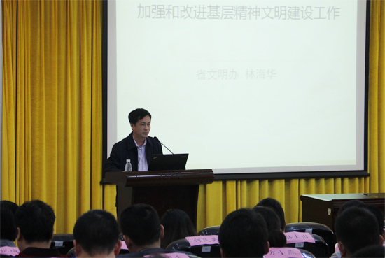仪式结束后,学员们就开始了紧张的课堂学习,由省文明办副主任林海华进行第一讲《加强和改进基层精神文明建设工作》。
