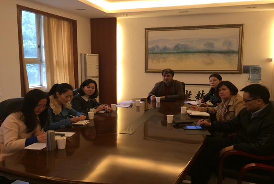 本网讯 为进一步促进我院教研工作的顺利开展,推动教学质量的提升,2015年3月10日下午,由继续教育(公开)学院副院长胡海娟带队,大众外语教育研究中心王蓉,唐玲、邹静宜一行前往广州市广外附设外语学校 (简称“广外外校”)开展教科研工作的调研。广外外校副校长方建军、教科室主任扈永进、小学教学处副主任周英、初三班主任白利军参加了此次调研座谈会。
