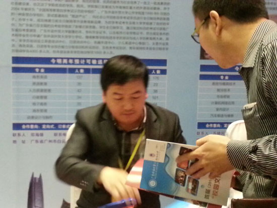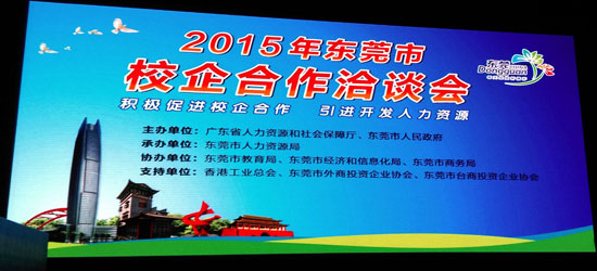 本网讯 4月10日,我院招生与市场办公室邓海雄、谭鹏飞代表学院参加了第六届“东莞市校企合作洽谈会”。此次洽谈会由广东省人力资源和社会保障厅与东莞市人民政府联合主办,东莞市人力资源局承办,东莞市教育局、东莞市经济和信息化局、东莞市商务局协办。参加此次洽谈会的有来自全国各省市的250余所学校和近千家当地企业。