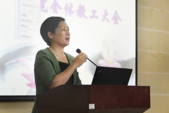接着,苏冬燕对已完成的学期重要工作--学院优化机构设置和调岗定岗工作进行通报说明。经过调整,学院的机构实现了优化:我院机构设置调整前有17个部门,其中行政部门10个,教学部门7个;调整后,现有部门浓缩为9个,其中行政部门5个,教学部门3个,将利于资源整合和效率提升。在调岗定岗工作中,学院坚持按照“德才兼备、以德为先;注重实绩;群众公认”的原则聘任干部,并按照能上能下、重点和关键岗位进行轮岗的原则对部分干部岗位及其他管理岗位进行调整。苏冬燕对顾全大局、服从调配、能上能下的干部给予充分的肯定。