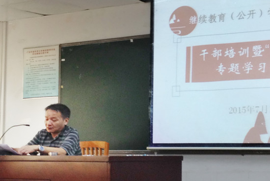 本网讯 7月16日下午,我院在校本部第三教学楼220室举行了干部培训暨“三严三实”专题学习研讨会。大学分管我院工作的副校长陈林汉教授莅临大会并作了一场务实、精彩的专题报告;院长何勇斌、院党委书记苏冬燕,全体中层干部参加了会议,会议由苏冬燕主持。