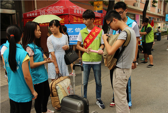 在两天的迎新工作中,身着各色马甲的团学志愿者成为校园里一道亮丽的风景线。这两天恰逢广州酷热天气,但志愿者们克服困难始终坚守在各自岗位上,有条不紊地忙碌着:登记注册,收集资料,为新生接过行李带路。尽管很累,但他们热情不减,坚持微笑服务。他们以贴心的服务、有序的安排,给新生和家长留下了深刻而美好的印象。