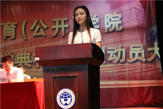 开学典礼在庄严的国歌声中开始,院长何勇斌上台致辞。他说,我院是全省5家公开学院中在校生规模最大的学院,也是唯一有独立校区,办学设施完备的学院,同时还是社会上公认办得最好的公开学院之一。这些突出的成绩让我院在办学的十多年间,培养了大批优秀毕业生。诸多的毕业生正是通过在我院的学习成就了自己的人生梦想,在这里磨练了他们的意志,锻炼了他们的能力。
