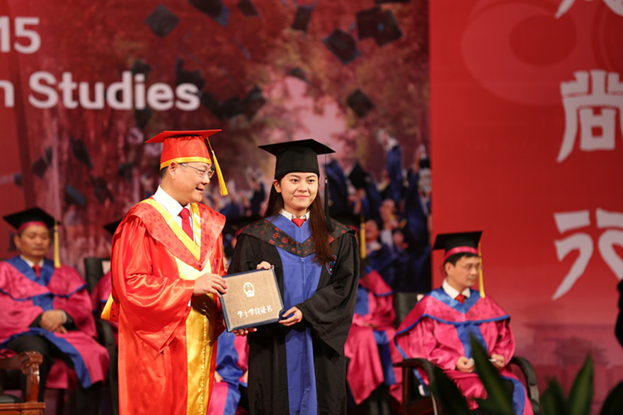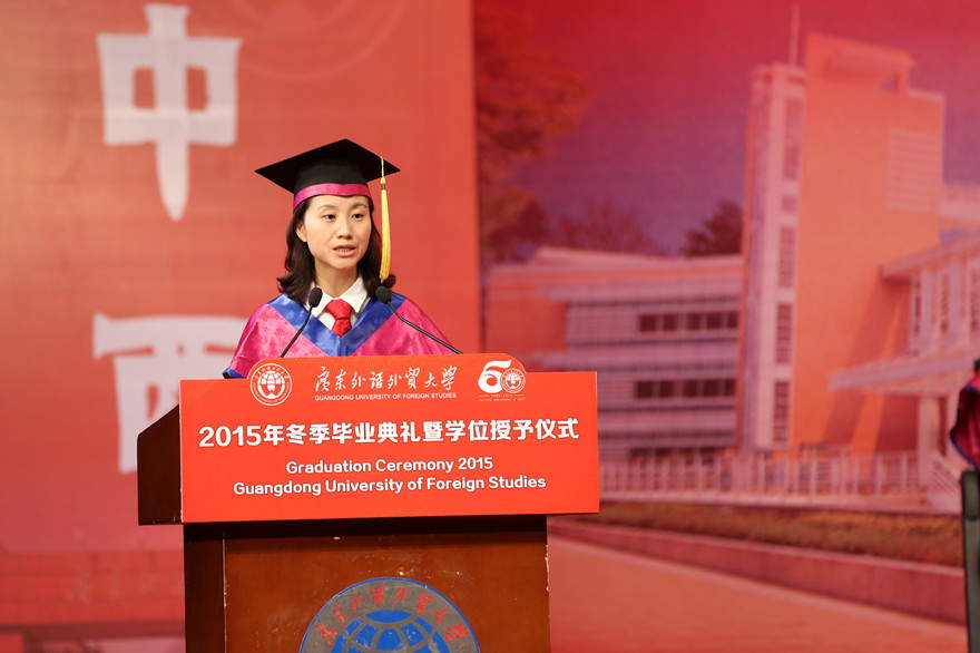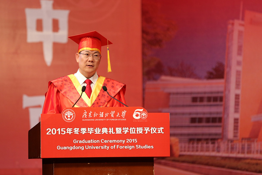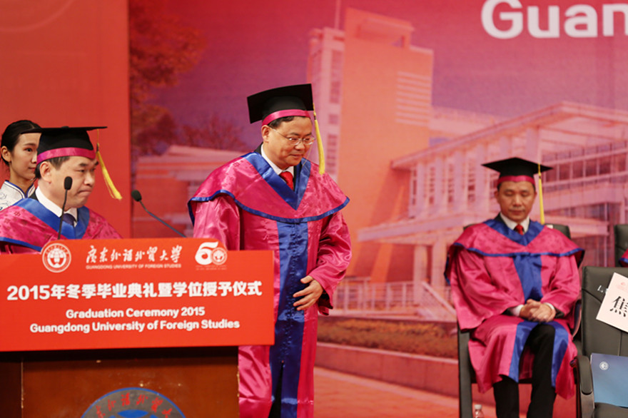 本网讯 12月19日下午,2015年冬季毕业典礼暨学位授予仪式在云山会堂隆重举行。“花开南国,凤鸣岭南”,在和煦的冬阳里,广外又有一批学子要离开母校踏上新的征程,其中通过自学考试获得学士学位332人,成教高考248人。
