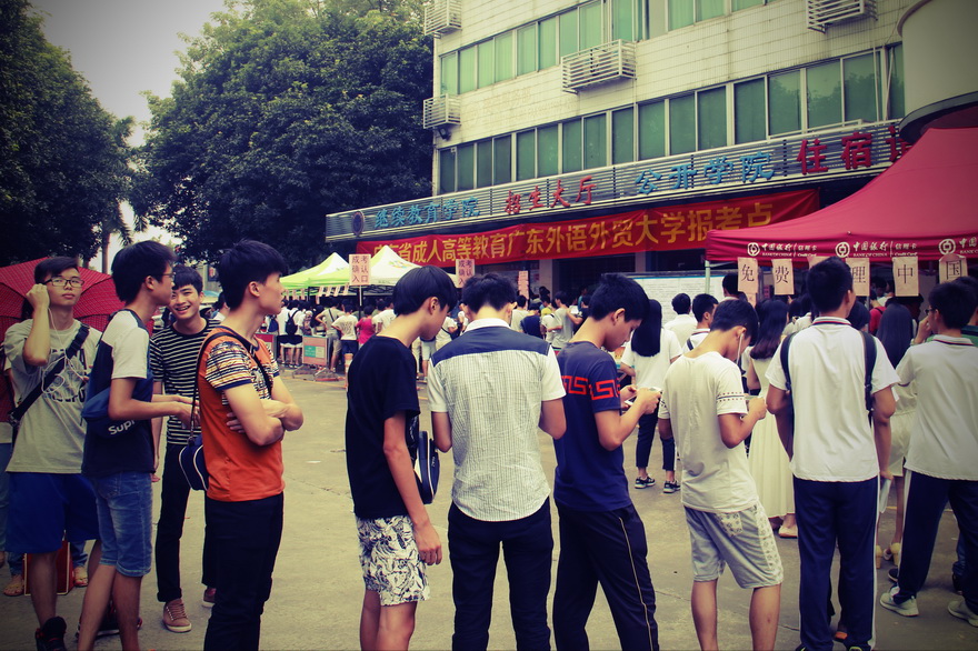 继续教育学院,公开学院成立后的早期,得益于珠三角地区的对外经济发展优势,社会对于外语外贸型人才需求旺盛,人们对于学习外语外贸知识热情高涨,学院招生大厅门庭若市。曾一度出现为了维持秩序和保证公平,工作人员给报名者派号,领不到报名号码就无法报读的情景。2001年秋季全日制学生就达到近9000人,远远超出大学提出的不少于5800人的规模要求。2002、2003年全日制就读人数更是达到超过11000人的规模。