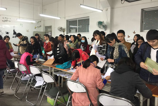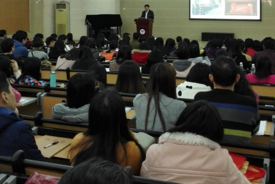 为了保证本次学士学位申请工作顺利进行,自考办做了充分的前期准备工作,申请程序的安排计划与相关工作人员的具体工作职责都做了精细的,合理的安排部署。由于本次前期准备工作做得充分,各个工作环节及人员安排合理,全体工作人员尽职尽责,对学生尽心负责,确保了各项工作忙而不乱,现场依然秩序井然,整个申请期间未发生学生拥堵等现象。中午13点30分左右,顺利完成了481名自考毕业生学位申请的资料审核和收费工作。为了更好地指导自考生开展学位论文写作,当日下午2时30分,学院院长何勇斌应邀在公开学院学术报告厅为报名申请学位的自考生做学士学位论文写作指导的讲座。刚进场,就引来了全体学生热情欢迎的掌声。