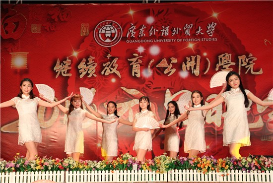 接下来,8位充满朝气的校园歌手以一首《向快乐出发》拉开了晚会的序幕,紧接着,艺术团舞蹈队的女生们身着白色旗袍,手持白色折扇,和着优美的音乐,为大家带来了中国传统音乐与现代街舞的融合之作——舞蹈《咏春》。罗艳老师的歌伴舞《祖国之恋》,清亮澄澈的嗓音,温馨动人的旋律 ,感染了现场每一个人。武术协会的同学为现场观众带来了刚柔并济的武术表演《中华魂》,展现了习武少年的一身正气和中国武术的博大精深。外语系的音乐剧《凝聚每份爱》,表演者或说、或唱、或跳,以丰富的演出形式演绎了理想、信念和爱。节目一个赛过一个,晚会高潮迭起。