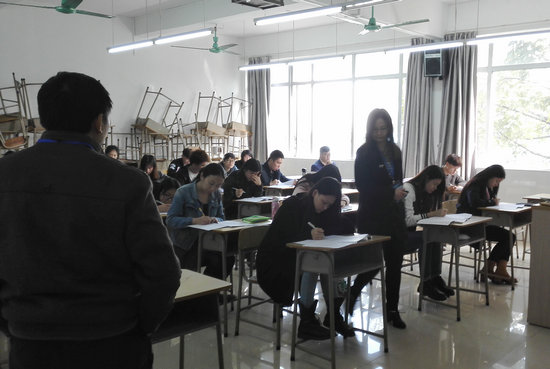 另外,根据自学考试规定,本次考试也重点对所有考试工作人员和监考人员举行了业务培训。由院长何勇斌提出考试总体要求,副院长胡海娟从考试工作安排、考场规则、监考职责、操作指令以及异常情况处理等各方面进行考前培训,并通过以往考试中出现的案例进行了详细说明。考前培训的目的是提高监考人员的认识,让每位监考人员详细、清楚地了解监考工作要求,以高度的责任心完成本次考试工作,保证考生顺利参加考试。考试期间,全体监考、考务工作人员严格按照考试要求、各负其责,整个组织工作专业、规范,保证了考试有条不紊地进行。