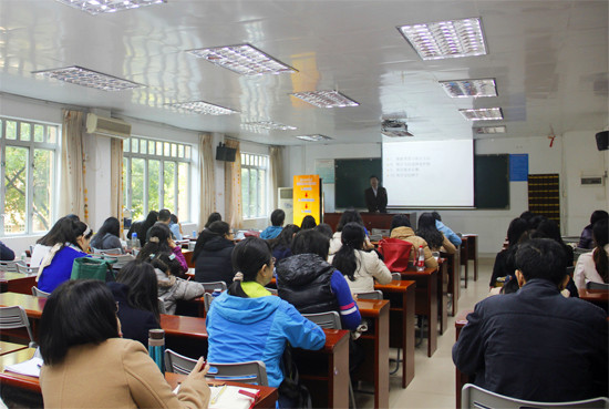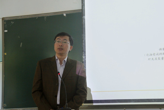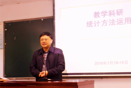 何勇斌首先对何家宁教授进行了介绍,并强调统计学作为一门研究数据的方法论在语言研究领域发挥着重要的作用,希望各位教师能够通过这次培训提升自己的研究能力。培训中,何家宁结合统计软件SPASS的分析结果从研究过程、研究方法的重要性、统计学的学习方法、统计学的学习体会、统计软件、统计学基本知识、数据类型与统计方法、统计方法选择流程图、统计基本步骤和统计学参考文献10个方面对论文和问卷调查的统计分析进行了详尽的讲授。通过对相关论文的举例分析,何家宁深入浅出,循序渐进地为在场的教师介绍了统计学在外语研究方面的应用。
