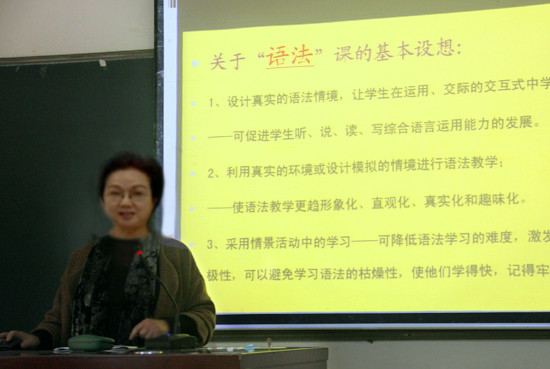 18日下午,刘小珊结合教学督导的听课经历和自身的授课经验从督导总结、重点研讨和教育探讨3大方面开展了主题为“外语教学法研讨暨教学督导总结”的专题讲座。通过对课程授课方法的分类比较,刘小珊教授对课程的差异性和各类教学法进行了图文并茂的阐述。