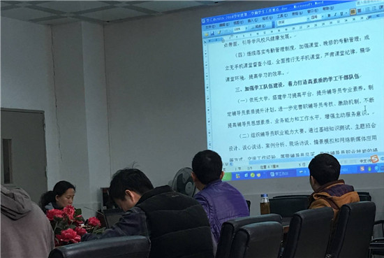 随后,曾健文对学期工作进一步进行了部署。曾健文在布置会上提出以“三个能够”作为学院学生工作的目标——学生工作要能够确保稳定安全;能够服务学生成长成才;能够成为学院宣传招生的一张名片。曾健文指出学院学生工作必须依靠全体学工人员,紧紧围绕学生工作“三个能够”,以“从严从实”为学生工作的理念和要求,在实际工作中,严格、务实、认真、创新性地开展工作。会上还提出要进一步加强学生工作课题研究,要求学工干部要认真总结,把实践中的经验体会上升为理论成果,一方面可以继续指导工作的开展,另一方面也是对学生工作、学院的宣传。