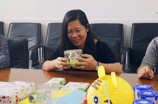 活动当天,工会委员和小组长作为工作人员,提前准备好活动场地,安排参与活动教职工抽号,凭号码领取礼物。活动现场一片喜气洋洋,充满节日的气氛。收获到自己心仪的礼物,大人孩子们都非常开心。