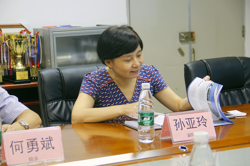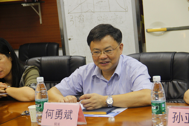 何勇斌对远道而来的上海外经贸大学国际与继教学院的领导们表示欢迎,并详细介绍我院的建设发展历程和基本情况。他介绍了我院在自考过程性考核课程中的政策优势,并说学院在面对日趋激烈的市场竞争以及高等教育大众化的趋势,采取了一系列有力的应对举措。他从传统的继续教育培训谈到与企事业单位合作(长期培训项目达33个)、高端培训及中小学英语师资培训等,近几年,学院全日制学生规模仍然常年保持在近7000人;学院与近50所高职院校有合作关系,每年自学考试本科与高职高专相沟通项目学员近5000人;我校成人学历教育一直稳定在每年万人以上的规模。