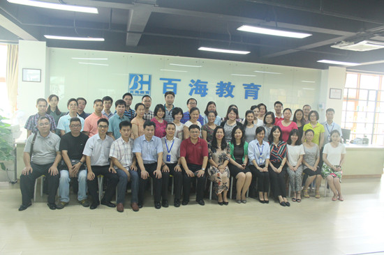 本网讯 7月5日上午,学院部长(教研室)主任以上中层干部前往番禺区百海教育培训学校开展“立足岗位做贡献”的学习交流,得到百海教育培训学校校长卢永祥、常务副校长孔婉琳、教学副校长邓飞和招生副校长黄永康及相关工作人员的热情接待。院长何勇斌、院党委书记苏冬燕、副院长任跃忠及胡海娟参加了本次学习交流。