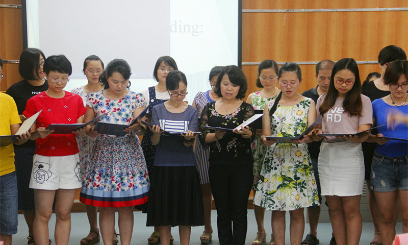 首先,任跃忠上台致辞。任跃忠对赣南医学院的教师们顺利完成为时12天的强化训练表示祝贺,感谢赣南医学院对广外的信任和对此次培训的重视。他指出,教师参加英语强化训练,不仅仅是提高自身能力的有效途径,更是对如何提高课堂有效性的一次探索。这次针对赣南医学院的教师们开设的英语强化班,是一次富有成效的培训实践,希望赣南医学院和广东外语外贸大学能够建立长期合作关系,广外将为赣南医学院的教师们提供更多高品质的英语培训。