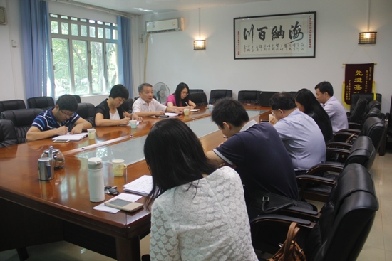 本网讯 按照大学的统一部署,9月12日9时,分管我院工作的副校长陈林汉教授率领财务处处长朱红、后勤党总支书记周东兰、科研处副处长陈平莅临我院检查新学期开学工作情况,学院全体领导在校本部三教207会议室向陈林汉一行做了汇报,会议由学院院长何勇斌主持。