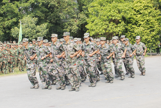 随着激昂的分列式进行曲响起,一连、五连方阵的队员迈着矫健的步伐,喊着响亮的口号,走向主席台。在教官果断的口令声中,出色地完成一个个动作:立正、稍息、跨立、敬礼、齐步走……踢腿果断迅速,脚步整齐利落。经过六天的军训,他们已褪去一脸稚气,透露出自信与成熟。