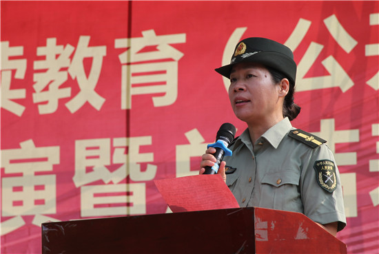 随后的军事技能表演中,散打方阵一展雄风,一招一式,干净利落,力量精准,气势如虹;铁拳钢腿,震慑全场。拳术表演中,既有男生的力量与阳刚之美,也有“巾帼英雄”的柔中带刚,刚柔并济;防爆、消防演练,有勇有谋的“警察”与“歹徒”斗智斗勇,成功制服“歹徒”,灵活有序的演练表演赢得台下观众阵阵喝彩。