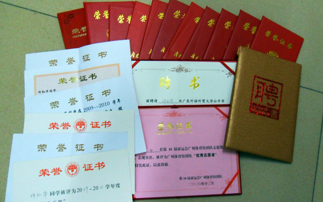2008-2009 获得学院“优秀楼长”称号