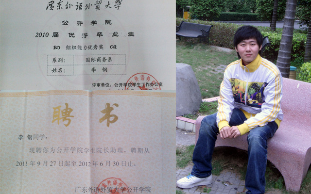 2011-2012被聘为广东外语外贸大学公开学院学生院长助理