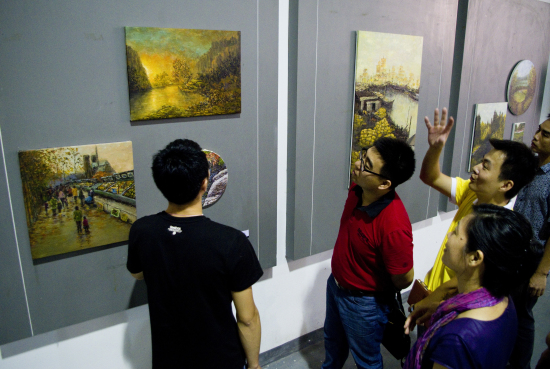 随后,众人移步参加李锋《不羁》个人油画作品展。其中,李锋的油画作品《往事》,引起苏冬燕和毕建勇的关注,苏冬燕饶有兴致地询问该画作的创作灵感,得知这是作者根据家乡的风景而创作的,并曾代表大学参加广东省大学生艺术展而获奖时,她点头表示赞赏。