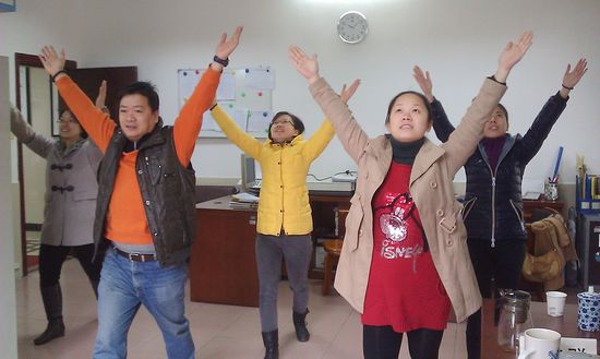 现在大家已经形成习惯,每天广播操预备音乐响起,都主动放下手中的事情,随着欢快的韵律和节奏,抬手、弯腰、踢腿……,每个动作都做得格外认真。一套操五分钟做下来,让人神清气爽,精神百倍。此次做广播体操活动深受广大职工的喜好,大家纷纷表示以后要坚持每天做广播体操,增强自身体质,以更精神饱满、积极向上的状态投入到自己的工作岗位。