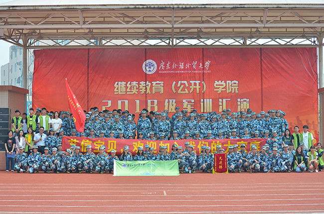 本网讯 2018年9月7日早上8点,广东外语外贸大学公开学院在夏茅校区迎来了2018级新生军训汇演暨表彰大会。