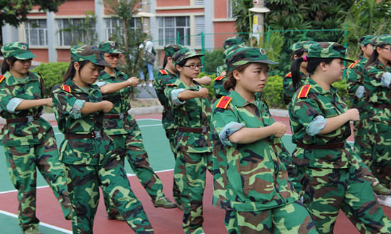 阳光明媚,学子们都面对阳光在站军姿。头顶的太阳,晒得眼睛都睁不开。这是我深有感触的。但无论谁都没有退缩,在跟太阳作战。在军姿中,学子们付出努力越多就站得越好。齐步跑等训练都是很耗体力的活动,只要认真去做就能走整齐。