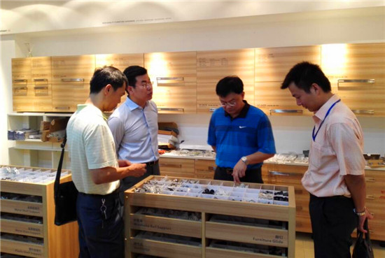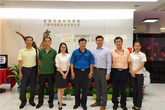 上午,何勇斌一行来到广州市沙太路天健广场参观郑壁奎的企业。企业由广州市拓臣五金有限公司、陆丰市固臣五金精密制造厂和陆丰市甲子强力五金配件厂组成。经过二十几年的发展和壮大,拓臣五金现已建立了科学全面的企业管理体制和质量管理体制,品质优良而稳定,在行业内享有极高的声誉。