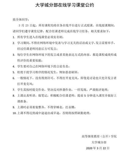 《线上学习课堂公约》