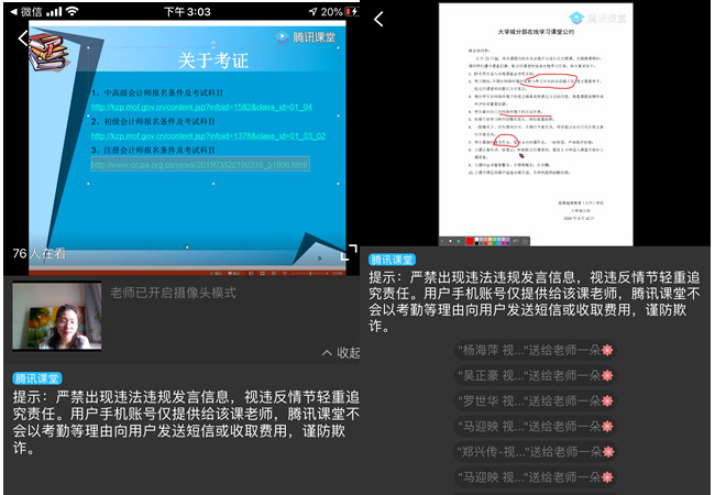 本网讯 根据学院“停课不停教,停课不停学”的指导精神,经过前期的工作准备,23日上午8:30,大学城分部正式开始线上授课,20余门课程,通过腾讯课堂、腾讯会议、ZOOM等平台,井然有序的开始线上教学。