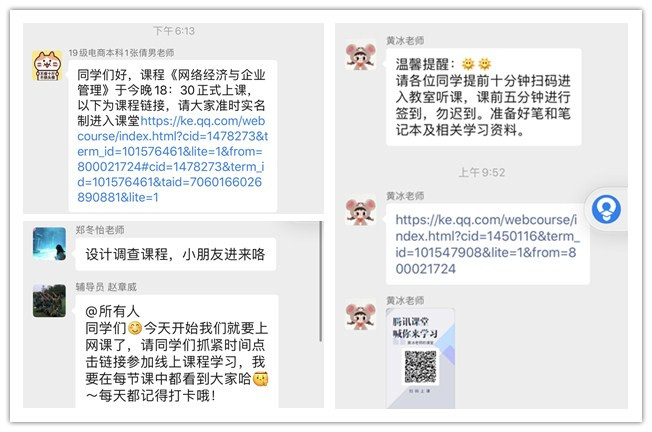 课前10分钟发布上课链接及温馨提示