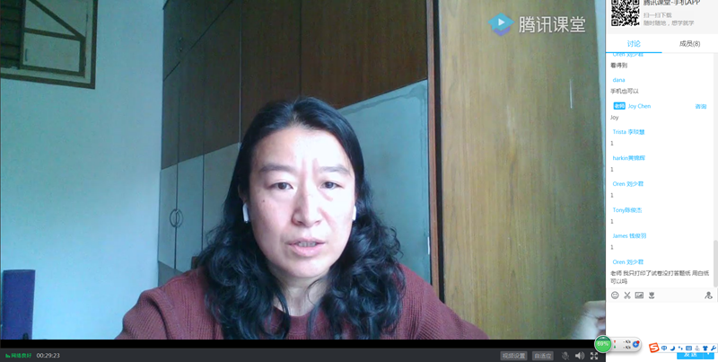 稍事休息之后,写作课张小芳老师已经在另一间腾讯会议室等待多时,由于正值上课高峰,网络有点塞车,虽然时不时有卡顿现象,但是张老师课堂活动设计精心,同学们积极参与互动,课堂气氛非常活跃。