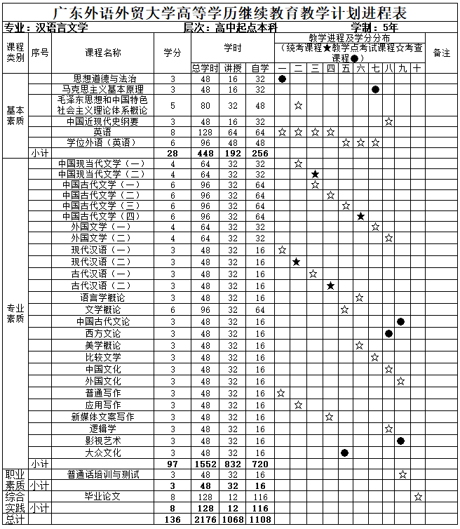 学分:总学分136,其中基本素质课程28学分;专业素质课程97学分;职业素质课程3学分;综合实践课程8学分。
