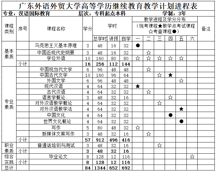 学分:总学分84,其中基本素质课程16学分;专业素质课程57学分;职业素质课程3学分;综合实践课程8学分。