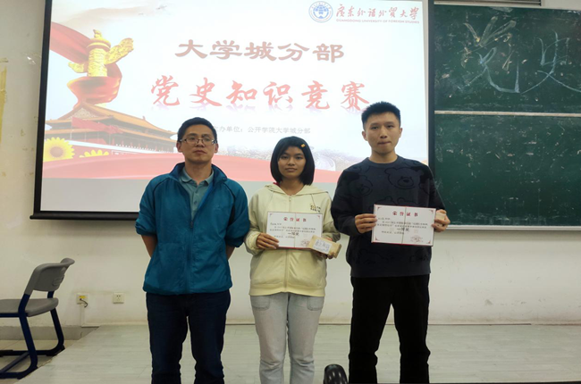 本网讯 12月9日,大学城分部在大学城校区教学楼F215课室举办第二届党史知识竞赛。大学城分部副主任周联兵、学工部主管赵章威出席。
