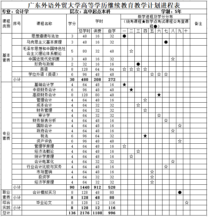 总学分136,其中基本素质课程30学分;专业素质课程90学分;职业素质课程8学分;综合实践课程8学分。